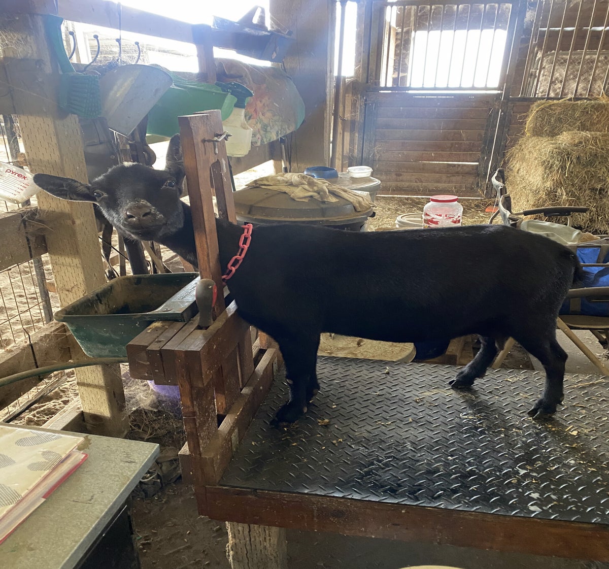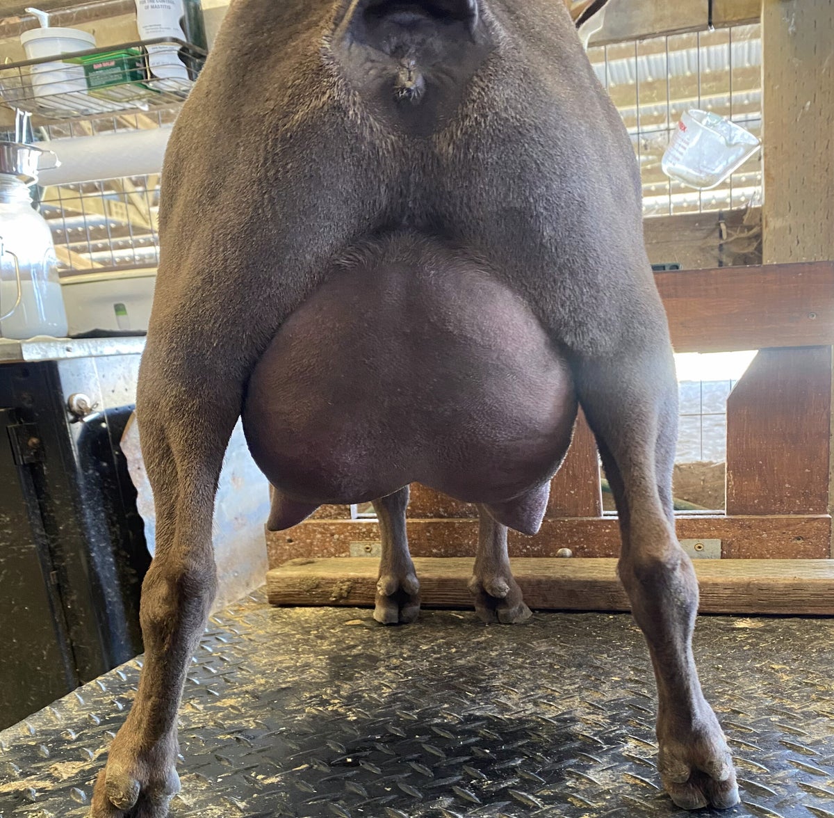 Coco is a yearling doe looking for a new herd. She unfortunately does not meet the criteria to continue on in my herd as a performance goat due to her teat placement. Her teats wing out to the sides, but despite that she has lovely udder capacity for a first freshener with a snug, well-attached udder. She has nice long teats as well that make her easy to hand milk, and she eagerly jumps up on the milk stand and and stands politely while being milked. Her kids are weaned and she is currently still in milk, ready to go to her new home either in milk or dried off. She could also potentially be bred to my buck before leaving as well. She is a friendly girl that's easy to catch, and is easygoing and gets along well with the rest of her herd.